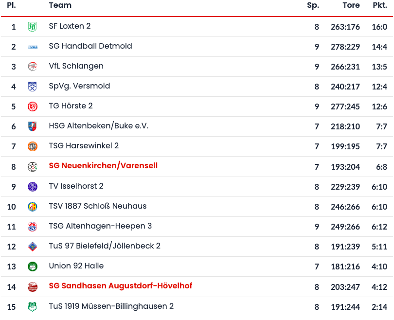 Die Gäste aus Neuenkirchen reisen mit Rückenwind an. In den vergangenen Wochen spielte die Mannschaft ihre bekannte Heimstärke in harzfreier Halle aus und besiegte die TG Hörste 2 und den Verbandsliga-Absteiger TuS Bielefeld/ Jöllenbeck 2 relativ deutlich. Mit der TG Hörste 2 teilten sich die Gäste am Ende der vergangenen Saison noch den dritten Tabellenplatz. Für die SG stehen damit bereits drei Heimsiege zu buche, sie stehen derzeit mit 6:8 Punkten auf dem achten Tabellenplatz.