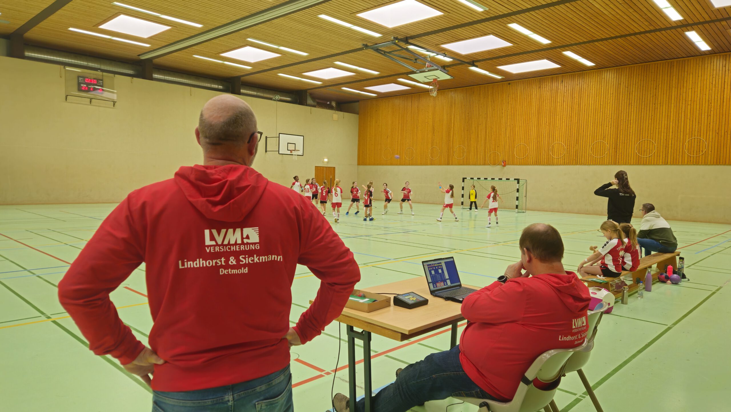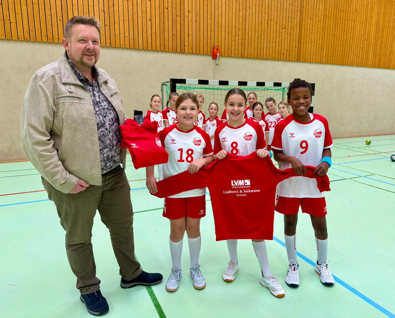 Unsere E-Mädels bleiben weiter in Topform! Nach der Auftaktniederlage in Lemgo hat sich die Mannschaft eindrucksvoll gefangen und steht mit 10:2 Punkten weiterhin auf einem starken 3. Tabellenplatz. Schon im Vorfeld des Heimspiels gegen den TSV Hillentrup herrschte beste Stimmung – denn die Spielerinnen konnten sich über neue Hoodies freuen, gesponsert von der LVM Versicherung Lindhorst & Siekmann aus Detmold.