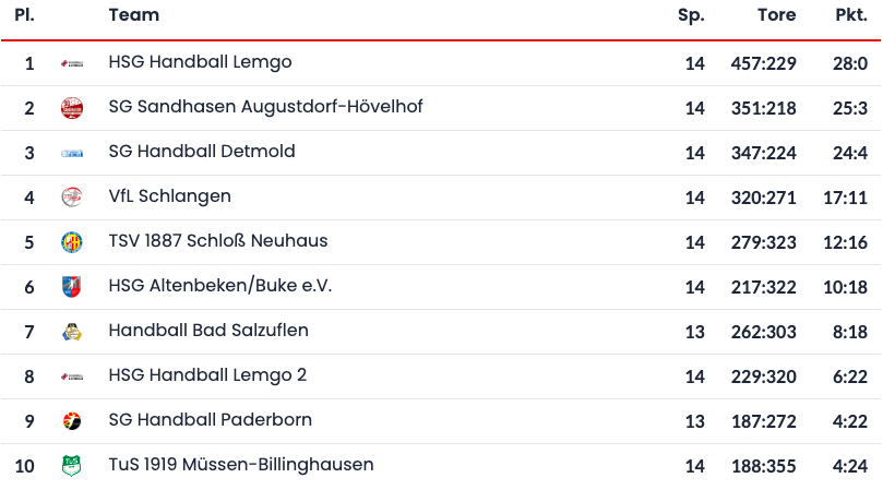 Den Auftakt machte ein überzeugender 16:28-Auswärtssieg beim TSV Schloß Neuhaus, dem ein klares 29:15 gegen Handball Bad Salzuflen folgte. Eine Woche später setzte das Team mit einem deutlichen 36:6-Kantersieg gegen die SG Handball Paderborn ein weiteres Ausrufezeichen. Nach nunmehr 14 Spieltagen stehen die Nachwuchs-Sandhasen damit auf einem hervorragenden zweiten Tabellenplatz in der Kreisliga.